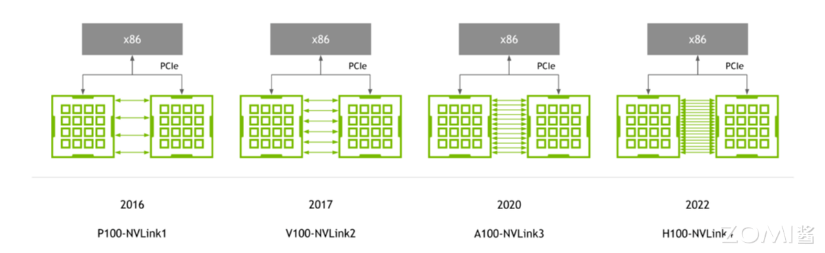 NVLink 核心优势是高带宽低延迟,专为 8 卡内近距离协同设计:H100 支持 NVLink 4.0,单链路带宽达 112.5 GB/s,8 卡互联总带宽 900 GB/s,延迟仅 10 μs。在大模型推理 TP 中,千亿参数模型需将 Transformer 层拆为 8 段分配到 8 张 H100,层间数据通过 NVLink 传输,若改用普通互连,延迟会升至 100μs 以上,整体推理延迟增加 30%。
