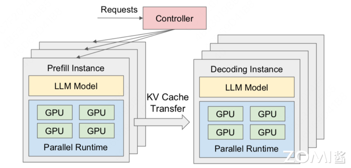 Prefill/Decode 分离的核心是资源隔离与任务并行:实践中常将两类任务分配至不同 GPU,避免相互抢占资源。例如 20% GPU 实例专门处理 Prefill,80%实例处理 Decode,通过分布式调度器动态分配任务:用户输入长文本时,优先转发至 Prefill,计算完成后将 KV Cache 同步至 Decode,立即启动逐 token 生成,实现 Prefill 结束即 Decode 开始的流水线衔接。