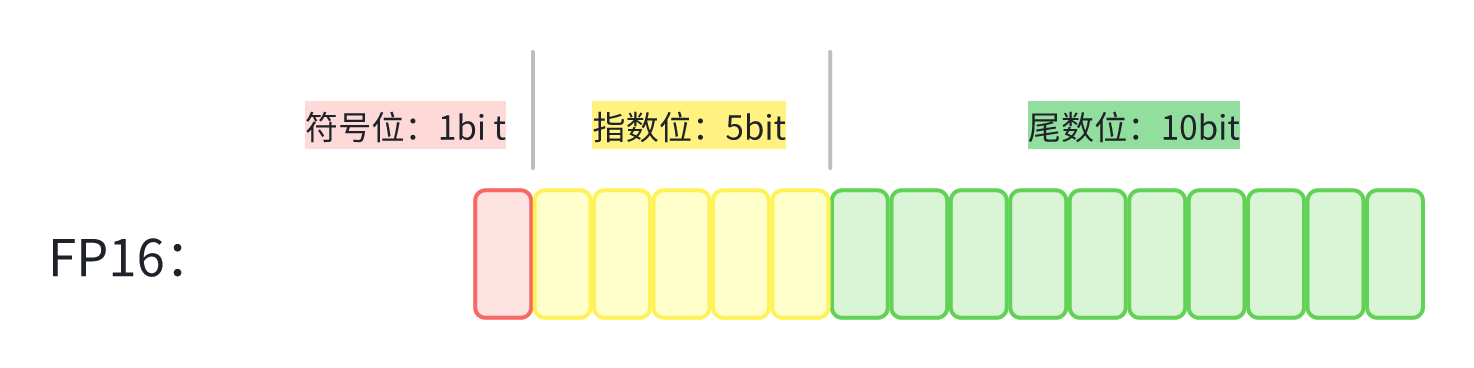 计算机中的浮点数遵循 IEEE 754 标准,由符号位 \(S\)、指数位 \(E\) 和尾数位 \(M\) 组成,下图是 FP16 的 IEEE 754 表示。