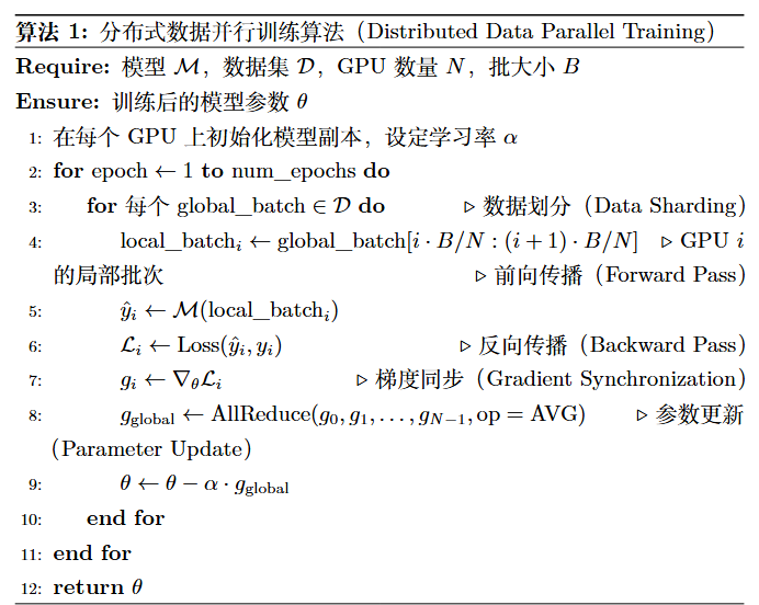 算法 1:Transformer 大模型的分布式数据并行训练