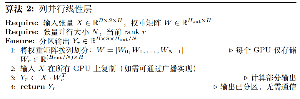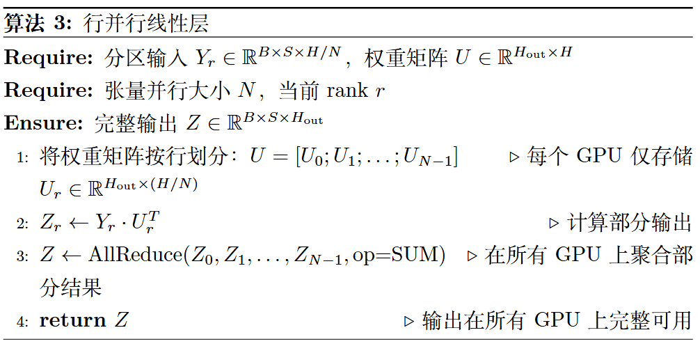 算法 3:Transformer 线性层的行并行实现