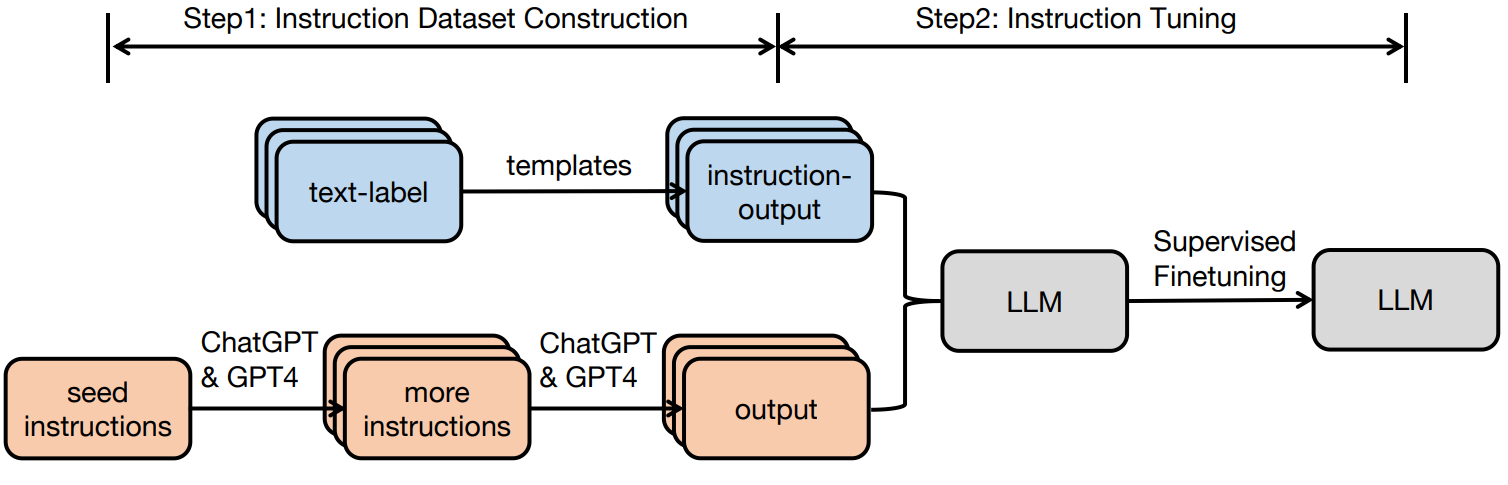 指令微调的核心思想是通过高质量的指令-回答对来训练模型,使其能够更好地理解和遵循人类指令。具体过程如下所示: