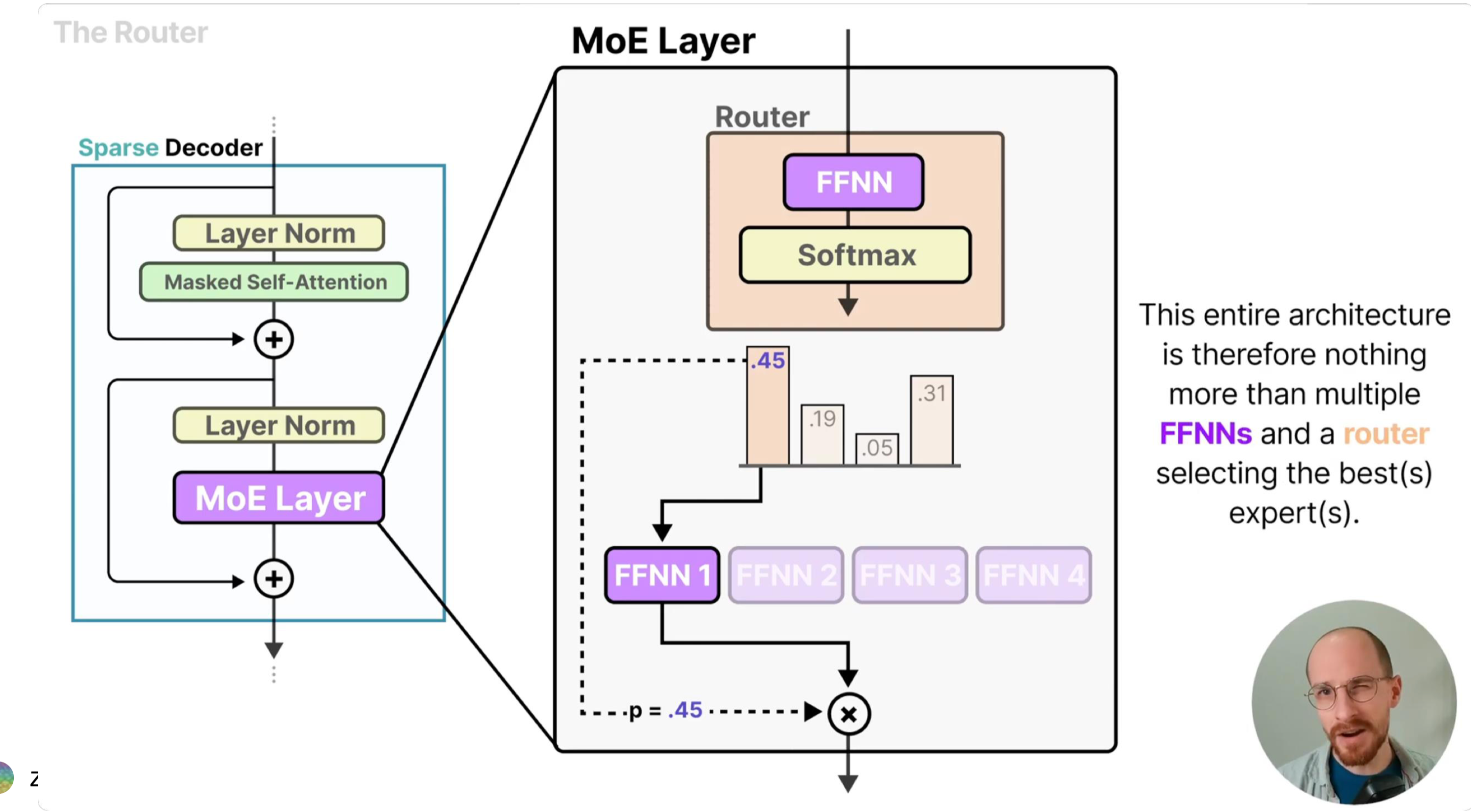 下面我们来看看真正实现一个 MoE 类,包括稀疏路由+负载均衡功能: